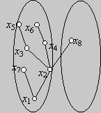 Ha az {x1, x2, …, xk–1}=A halmaz nem tartalmazza a G gráf összes pontját, akkor (D) szerint van olyan él, amely A és a gráf többi pontja között fut, vagyis egy A-beli xi pontot köt össze egy A-n kívüli xk ponttal. Az xk pontot és az xixk élt beválasztjuk a G’ részgráfba. (Az alábbi ábrán i=2 és k=8.)